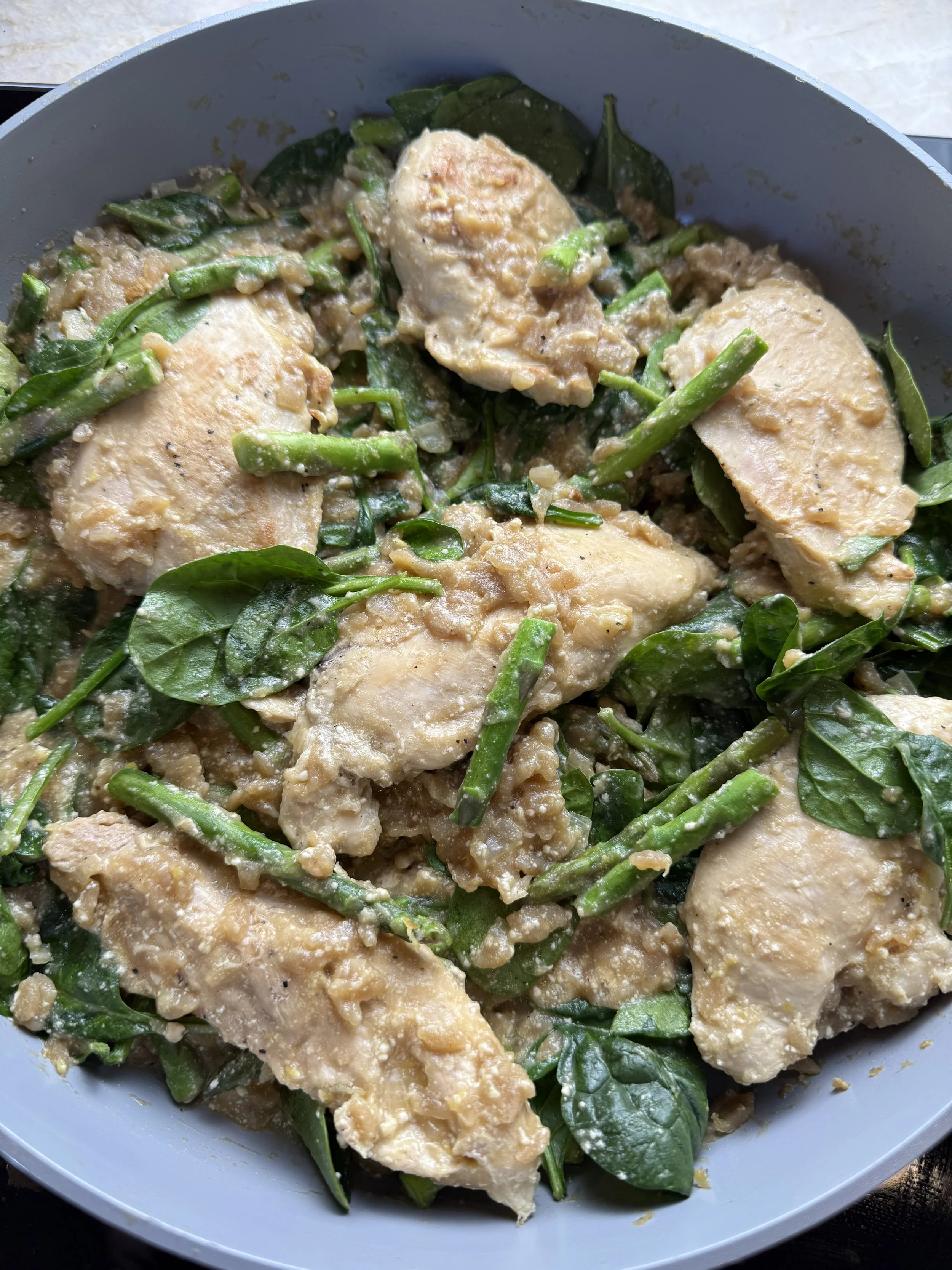 This clean eating lemon ricotta chicken and orzo is a one pot healthy dinner made with simple, real food ingredients like fresh lemon, leafy greens, and tender chicken. It’s an easy Whole Foods recipe that feels comforting while still light, fresh and nutritious.