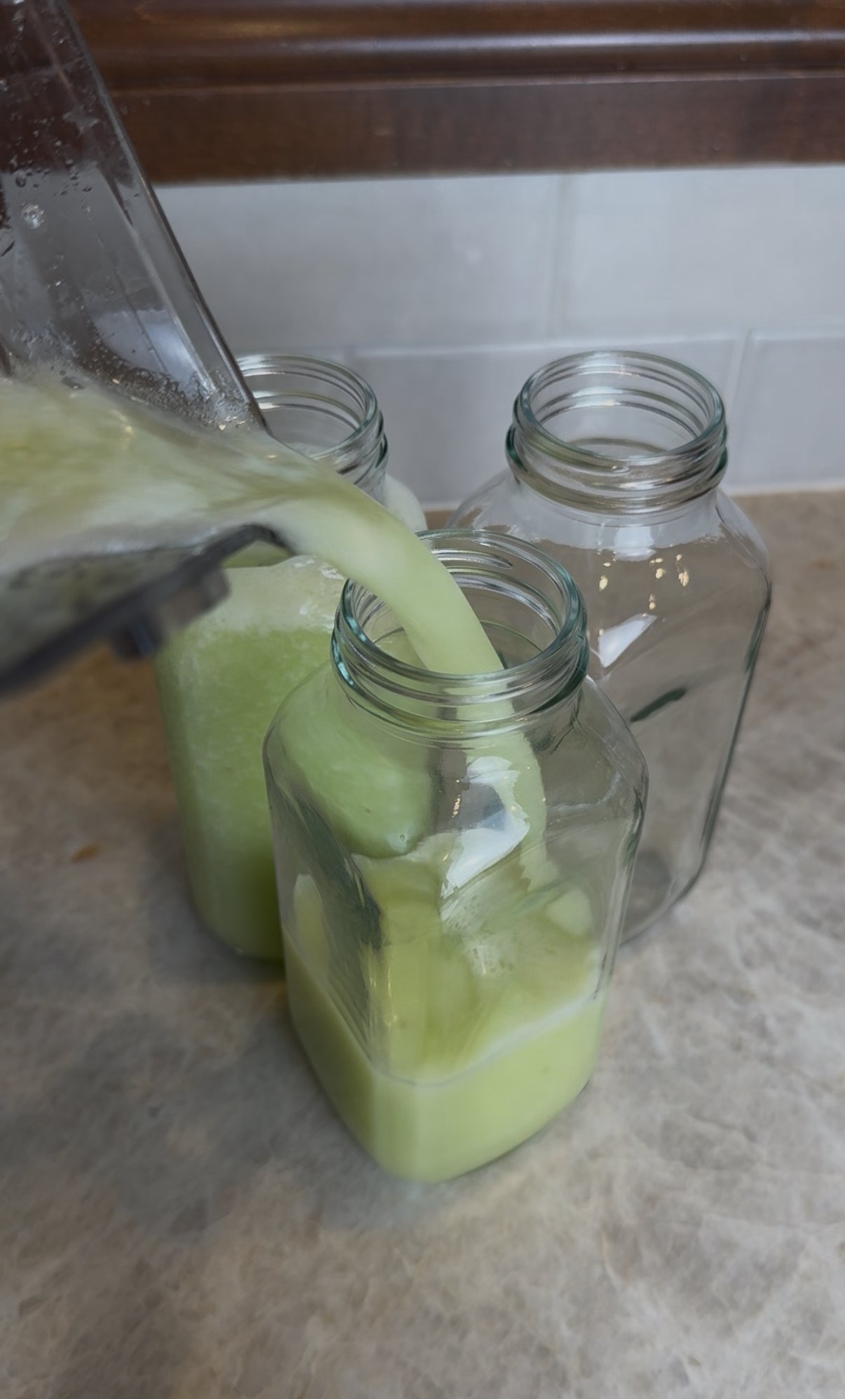 - blend everything in a power blender until liquified. You will not need to strain. Add more water if it’s too thick.