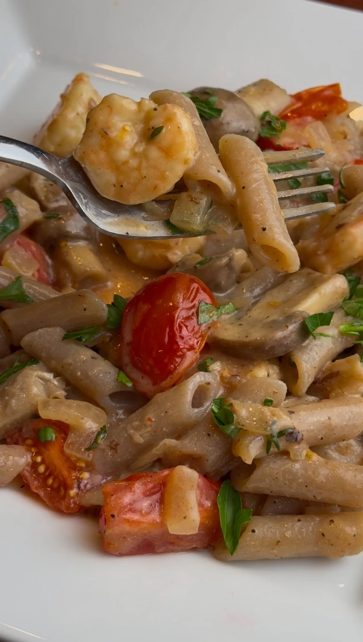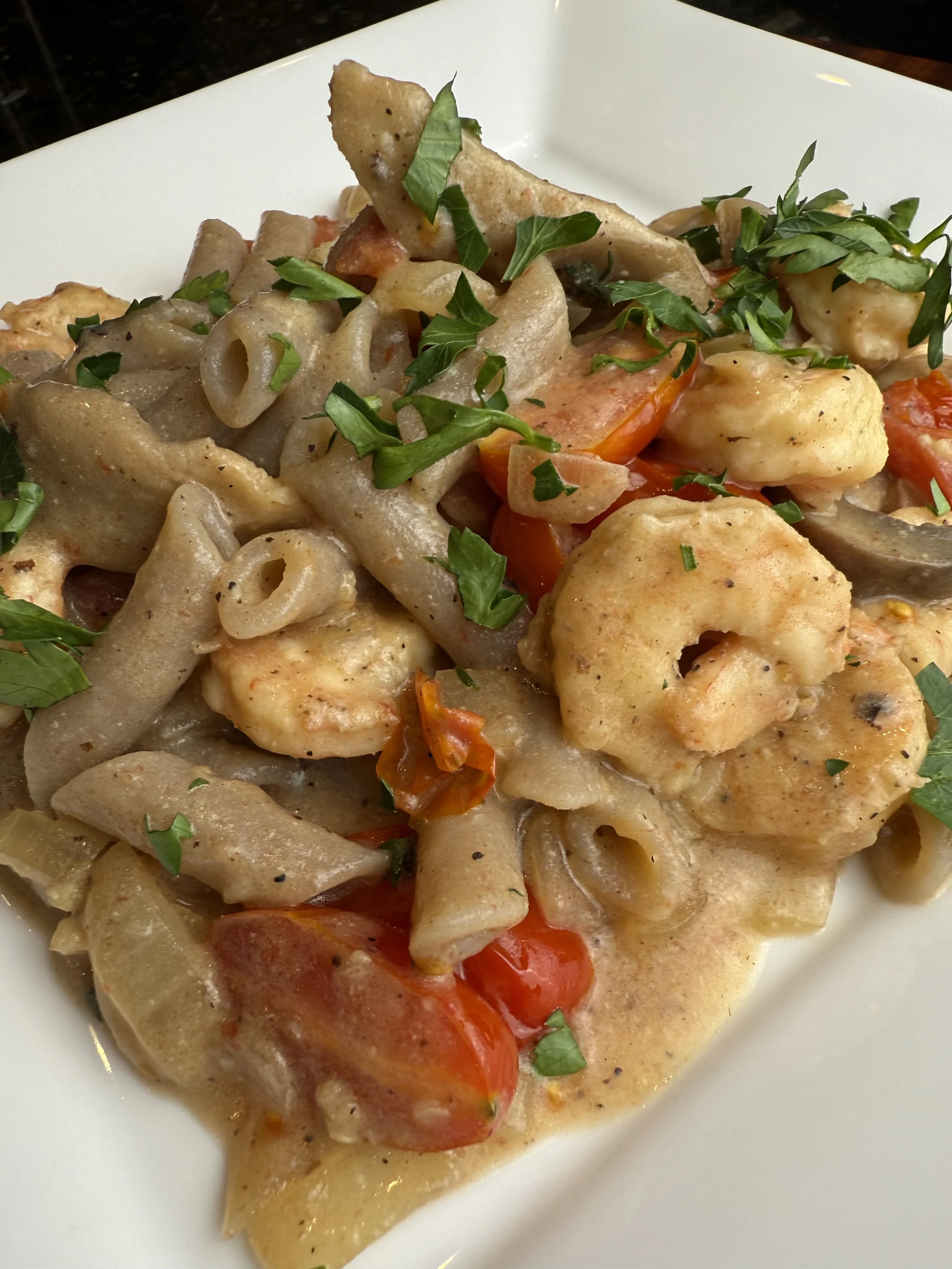 Creamy Garlic Mushroom and Shrimp Pasta