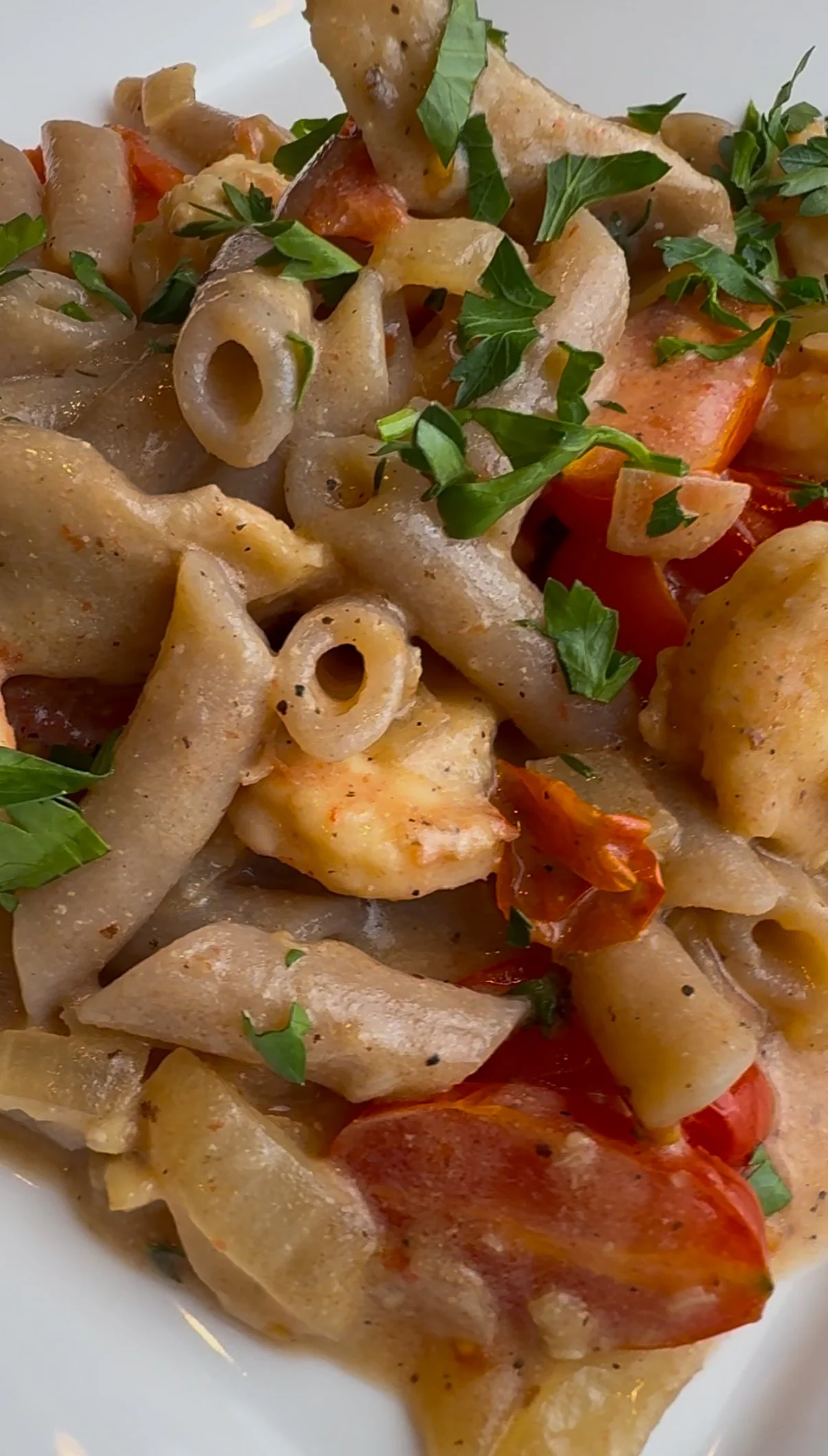 - Plate the pasta and garnish with fresh parsley.