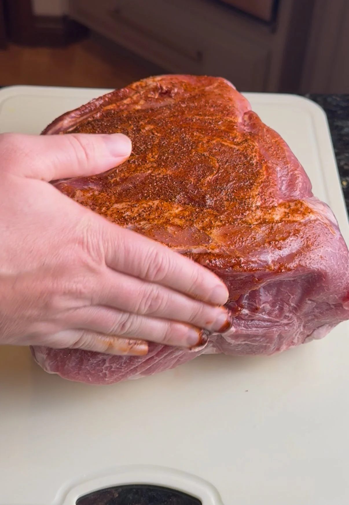 - Rub pork with oil, paprika, salt, cumin, and pepper.