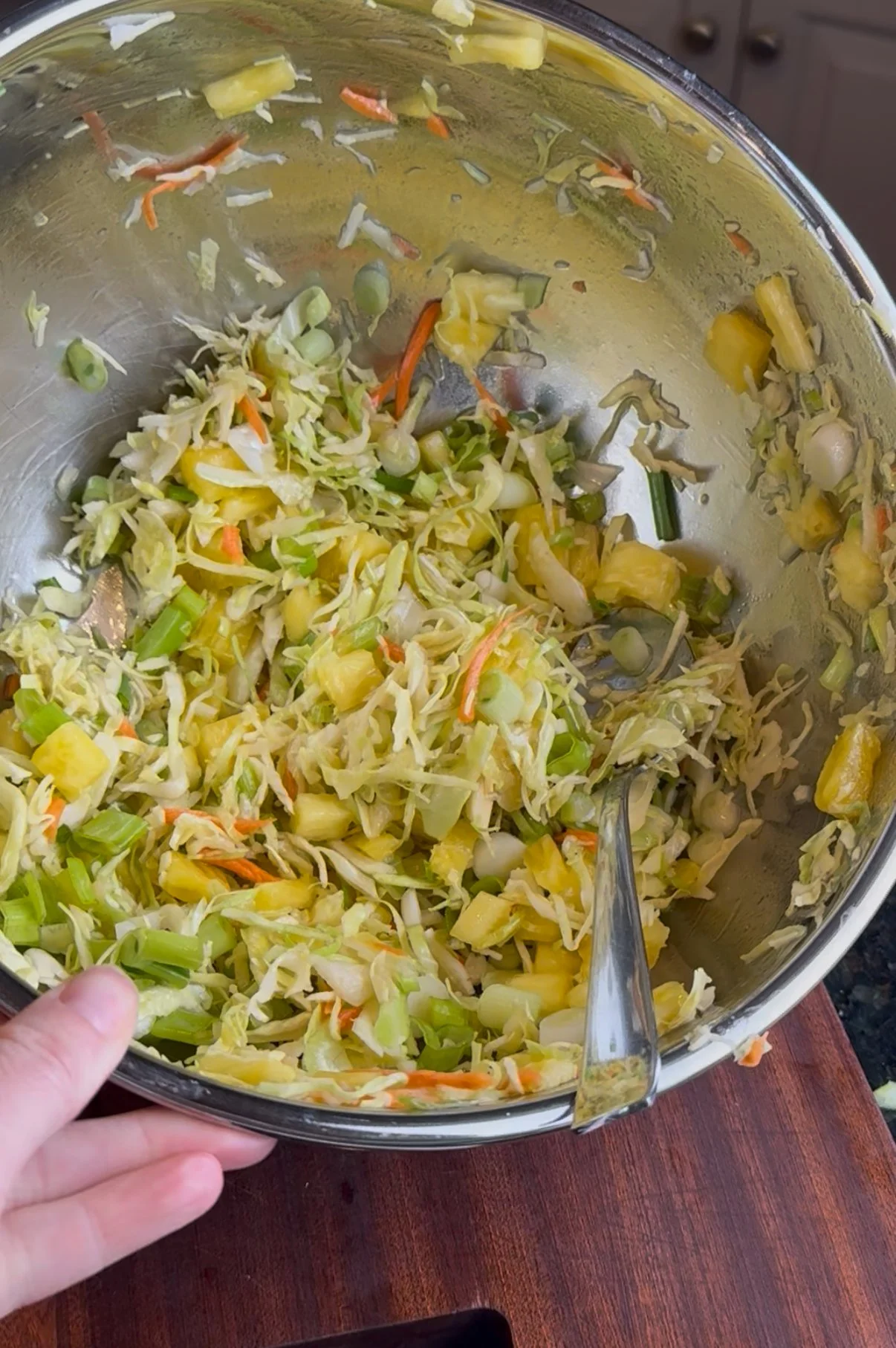 - Mix all pineapple slaw ingredients and chill until ready to serve.