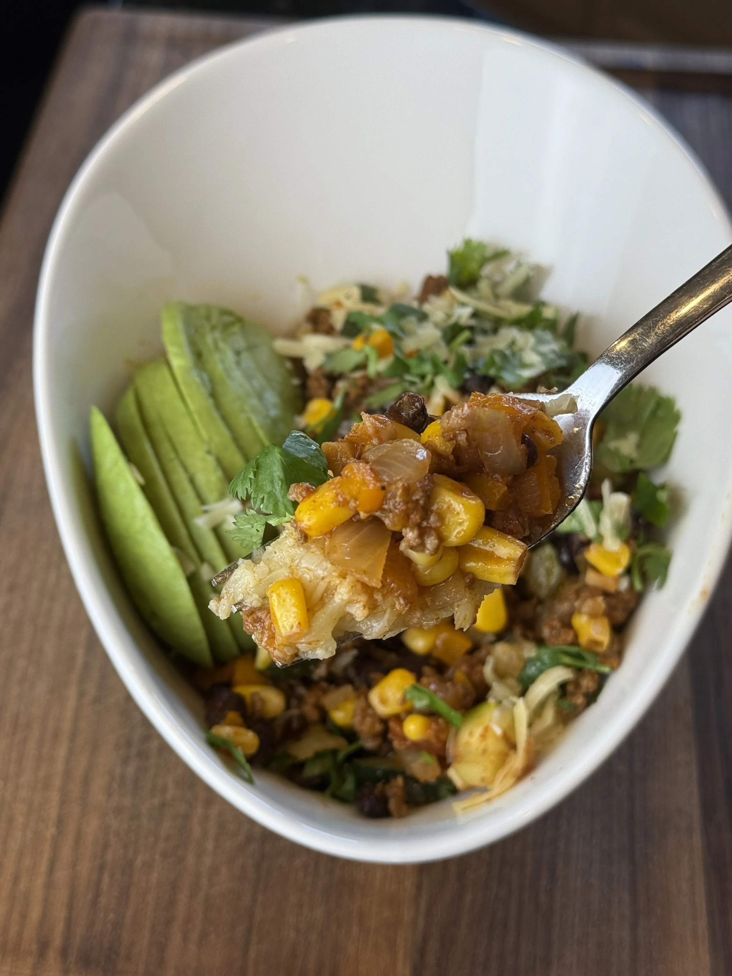 A quick and hearty dinner packed with bold spices, black beans, veggies and tender beef. It’s a wholesome gluten free meal that comes together fast- perfect for busy weeknights and taco lovers.