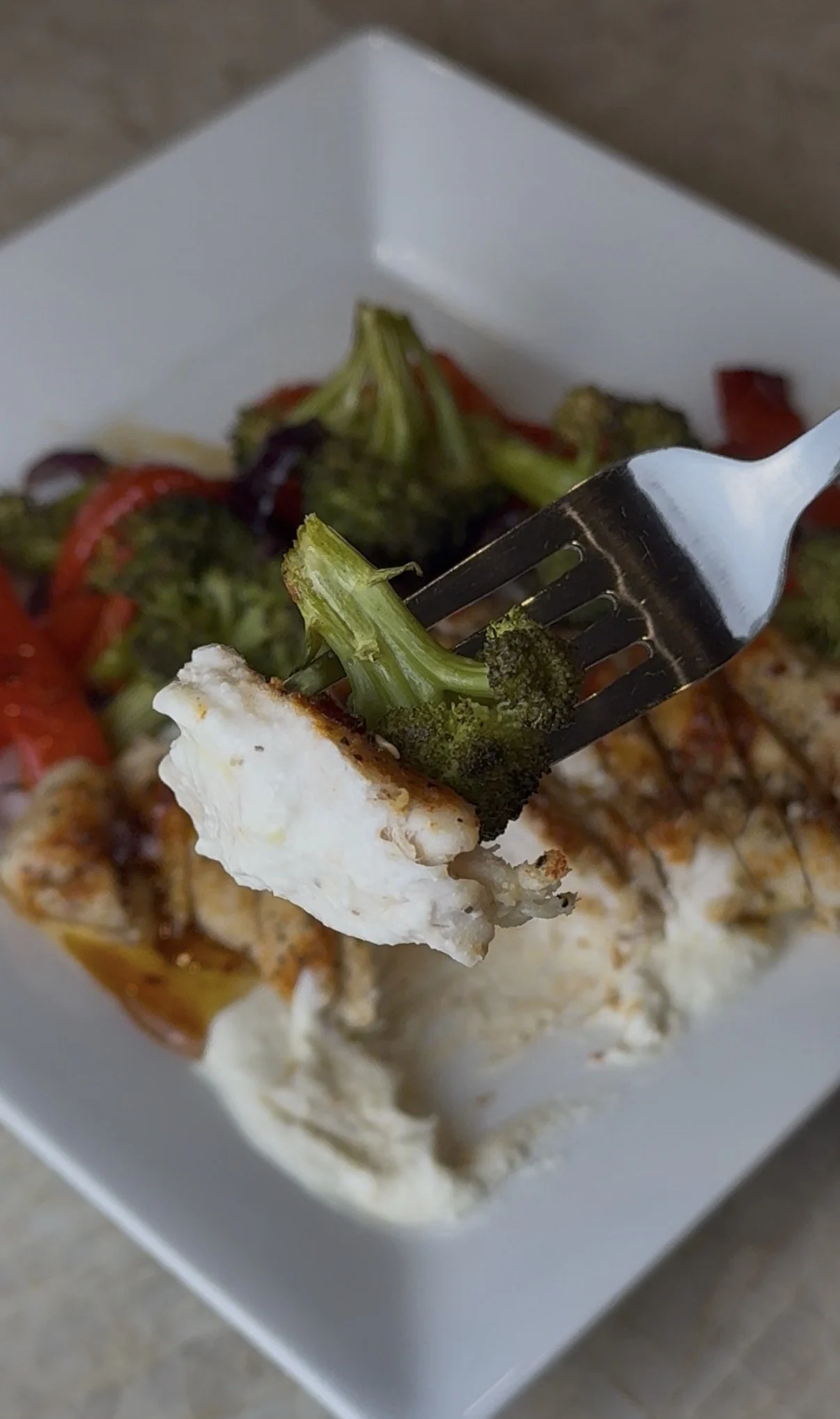 Crispy, golden chicken drizzled with a sticky hot honey glaze, served over creamy whipped feta and a colorful medley of roasted vegetables. This gluten-free, whole-food recipe is packed with flavor and made from real, wholesome ingredients- perfect for clean eaters and anyone looking to enjoy a healthy, satisfying meal.