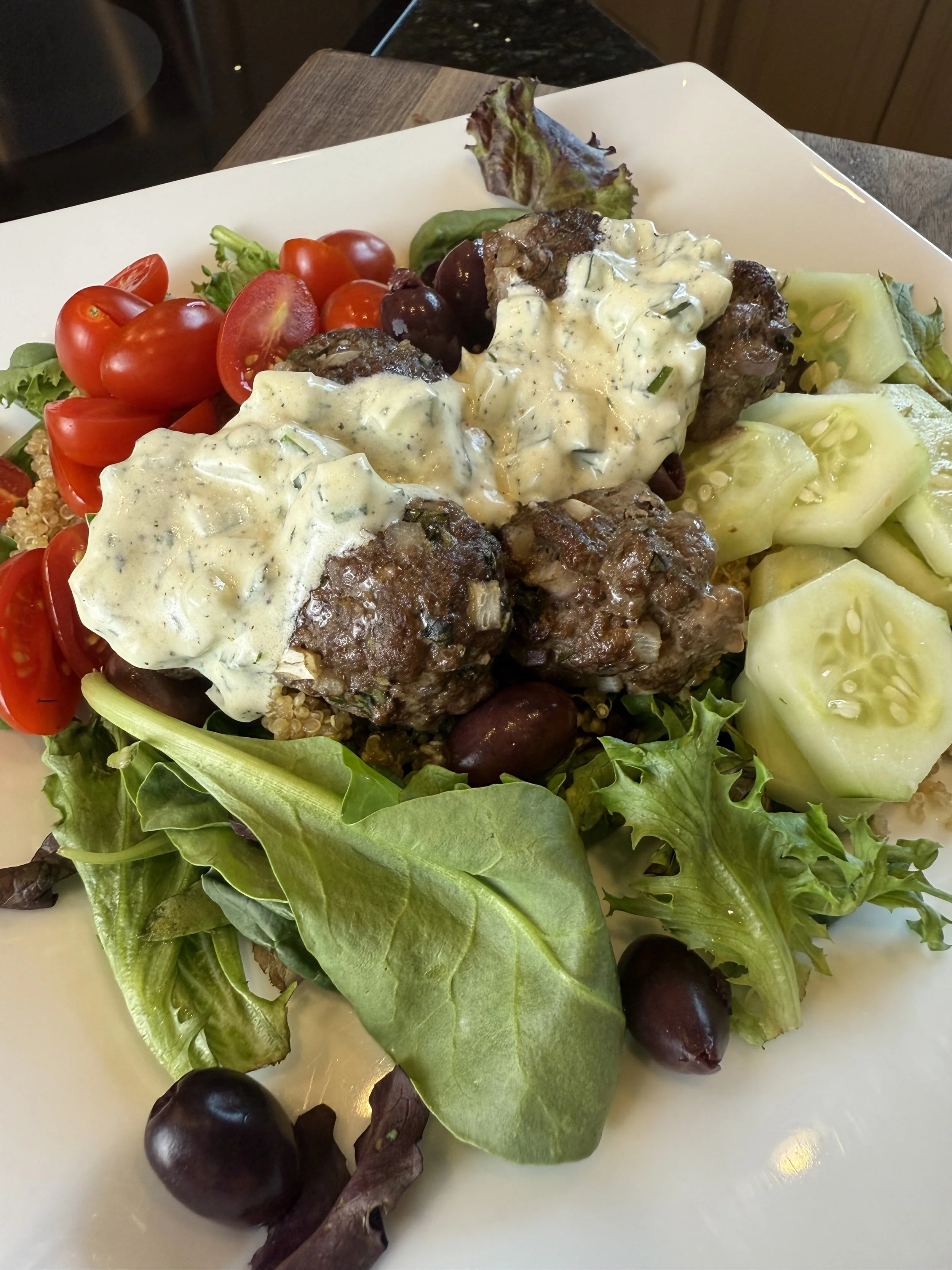 These Mediterranean-inspired bowls are a fresh, protein-packed option for dinner—perfect for summer nights and even better the next day as leftovers. The bison meatballs are tender, flavorful, and baked to perfection with garlic, basil, and warming spices. And the homemade tzatziki? Bright, creamy, and totally worth making from scratch.