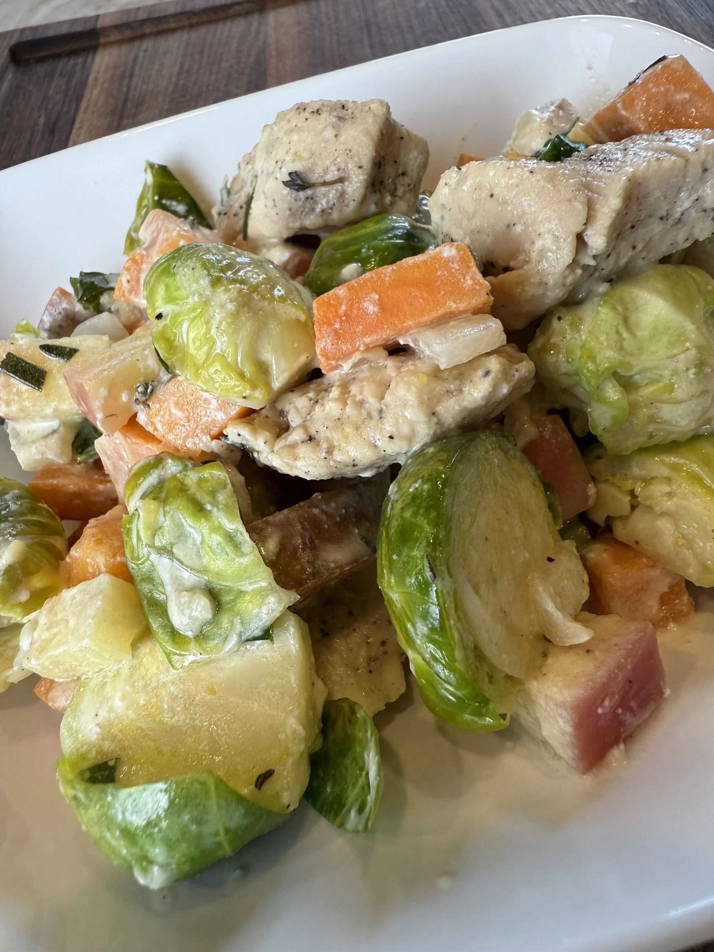 A cozy, one-pan dinner made with juicy chicken, sweet potatoes and seasonal vegetables in a light, dairy-optional creamy sauce. It’s a gut-healthy, gluten-free meal that’s packed with flavor and perfect for busy weeknights.