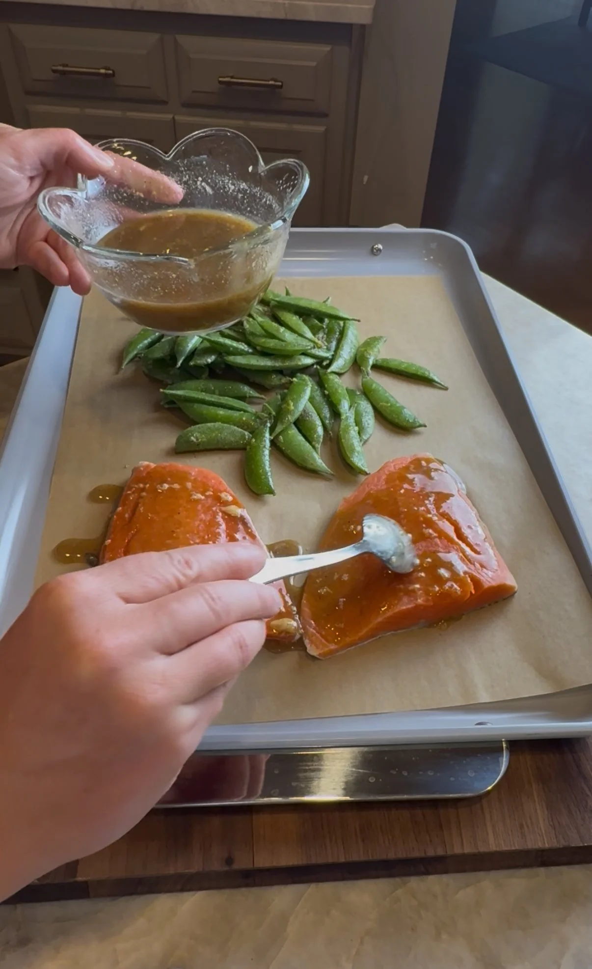 - Pat the salmon fillets dry with a paper towel and season with salt and pepper. Then brush the glaze mix liberally over the top of the salmon fillets.
