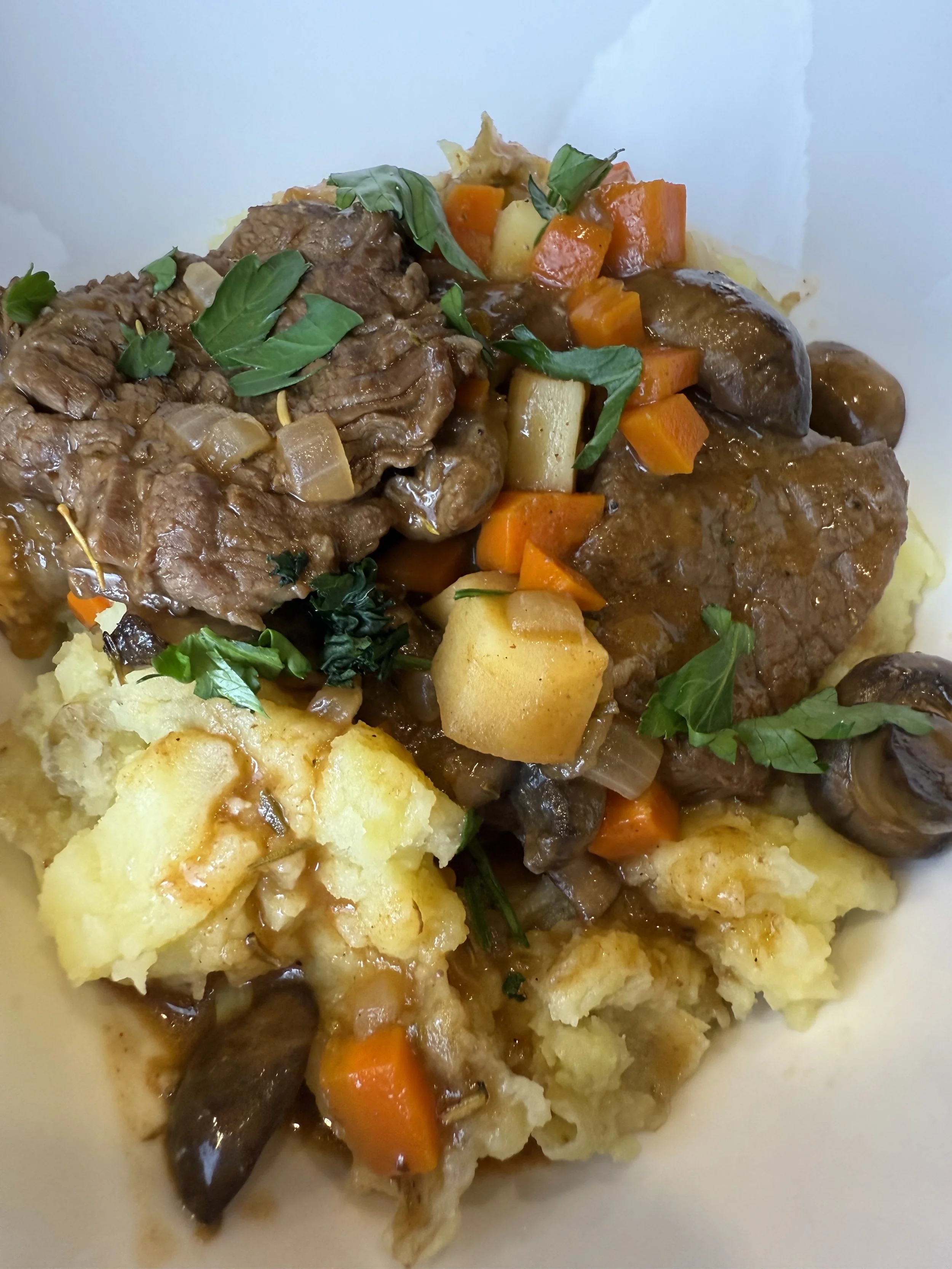 - Spoon over mashed potatoes, cauliflower mash, or GF noodles. Top with fresh parsley.